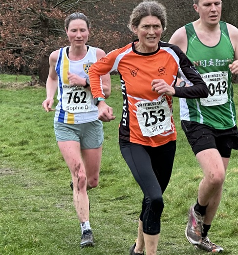 This year’s Kent Fitness League has been hard fought between the leading contenders, Sevenoaks AC, Petts Wood Runners, Thanet Road Runners, Canterbury Harriers, Maidstone & Medway AC, and Paddock Wood AC, with record numbers of competitors. The series comprises 7 gruelling cross-country races starting in Swanley in October, and touring the County with races in Knole Park, Eltham, Minnis Bay, Deal, Allhallows Park, and finishing on Sunday 22nd February in Mote Park Maidstone. The women’s team competition has been particularly close, with Sevenoaks AC (champions in 2020, 21, and 2022) trying to catch last year’s champions, Canterbury Harriers, and stay ahead of Petts Wood Runners.